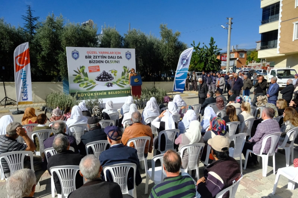 Birbiri ardına hayata geçirdiği projelerle üreticilere karşılıksız destek vererek can suyu olan Eskişehir Büyükşehir Belediyesi, Sarıcakaya ve Mihalgazi ilçesinde düzenlenen törenlerle vatandaşlara 12 bin adet zeytin fidanı dağıttı. Kapama Zeytin Bahçesi Projesi kapsamında düzenlenen törende konuşan Büyükşehir Belediyesi Genel Sekreteri Ayşe Ünlüce, “Çok heyecanlı ve mutluyuz” derken, Mayıslar mahallesinde kurulacak Plastik Kasa Üretim Tesisi müjdesini de vatandaşlarla paylaştı.