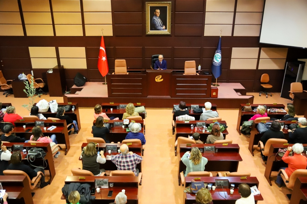 İzmir Selçuk ve Aydın Kuşadası’nda yaşayan emekli ve çalışan öğretmenler, düzenledikleri Eskişehir gezisi kapsamında Başkan Büyükerşen’i ziyaret etti. Misafirlerini Büyükşehir Belediyesi Meclis Salonu’nda ağırlayan Başkan Büyükerşen, nazik ziyaret nedeniyle teşekkür ederek, “Sizleri Eskişehir’de görmekten dolayı çok mutluyum.” diye konuştu.