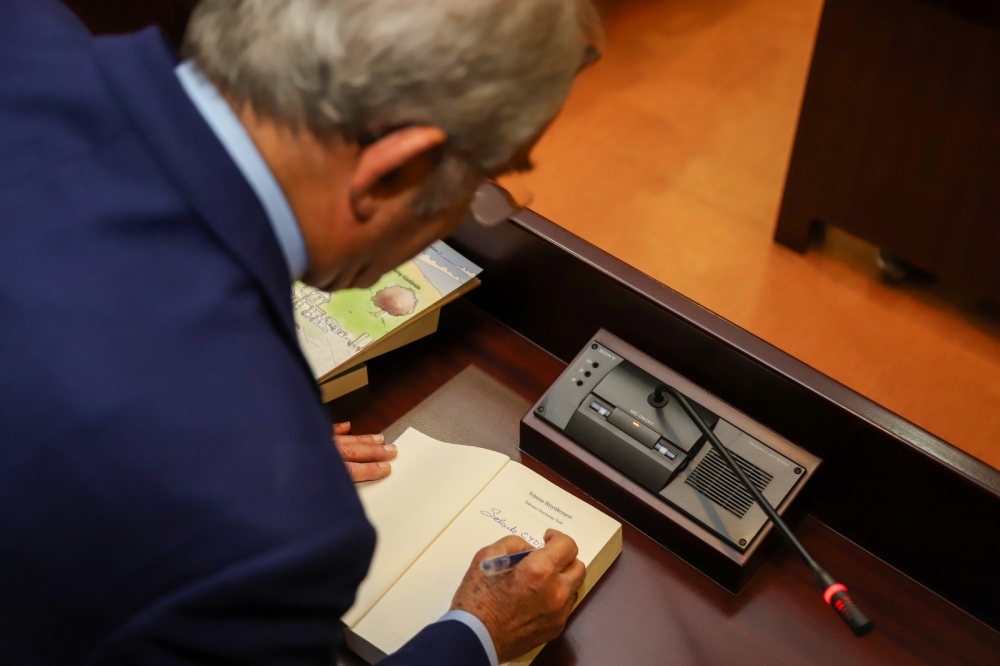 Ziyaret sonunda Egeli öğretmenler Başkan Büyükerşen’e zeytin fidanı, İzmir ve tarihi Efes’i anlatan çeşitli kitaplar takdim ederken, Büyükerşen de, “Zamanı Durduran Saat” adlı kitabını imzalayarak hediye etti. Karşılıklı görüş alışverişinin yapıldığı ziyaret günün anısına çektirilen hatıra fotoğrafı ile sona erdi.