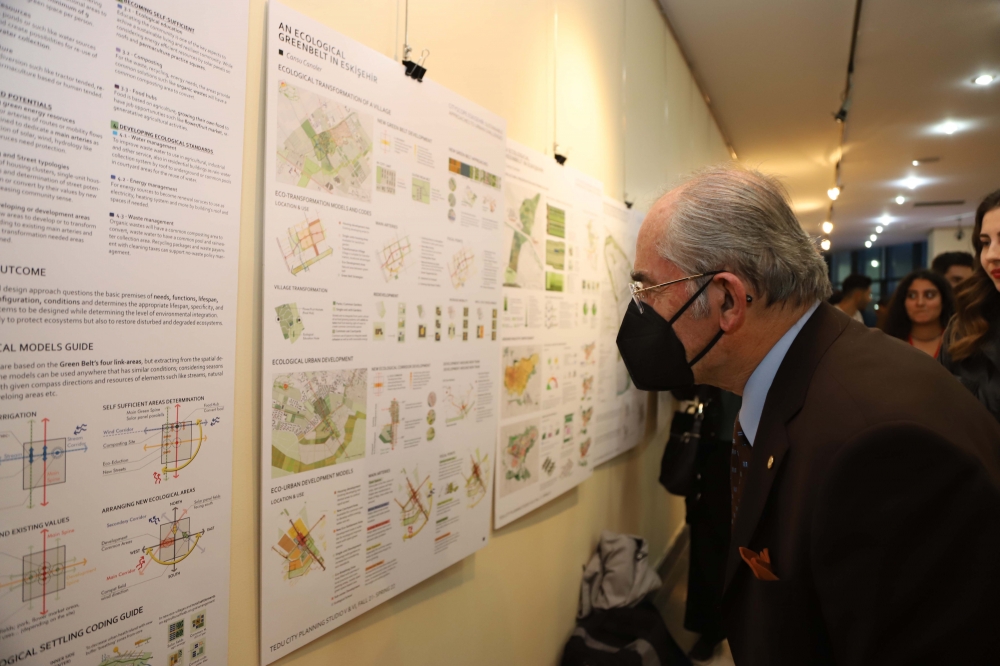 TEDÜ Şehir ve Bölge Planlama Bölümü 2021-2022 Akademik dönemi 4. sınıf Eskişehir stüdyosu öğrenci projelerinden oluşan “Eskişehir’de Kentsel Sürdürülebilirlik (Urban Sustainability in Eskisehir) başlıklı sergi, Şehircilik Kolokyumu süresince Turgut Özakman Sergi Salonu’nda sergilendi.