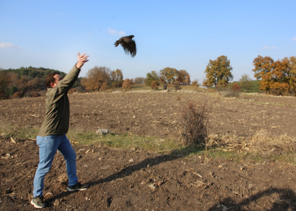 Kafeslerde getirilen akbaba ve atmaca, ormanlık alanda teker teker doğal ortama salındılar. Salındıktan sonra kısa bir süre duraklayan hayvanlar, daha sonra uçarak özgürlüklerine kavuştular.