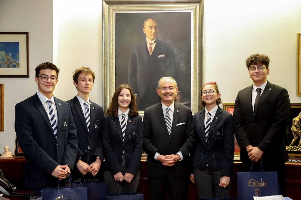 Atayurt Okulları Girişimcilik Kulübü üyeleri, Eskişehir Büyükşehir Belediye Başkanı Prof. Dr. Yılmaz Büyükerşen’i makamında ziyaret etti.