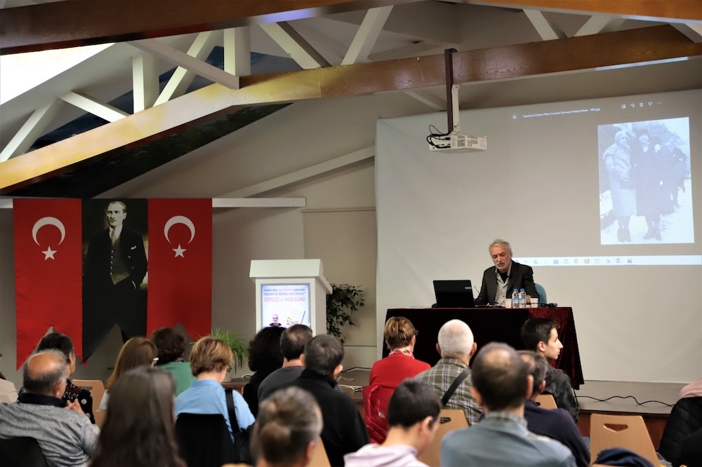 Yazar Yaşar Gürsoy, Haller Büyükşehir Belediyesi Gençlik Merkezi Frigya Salonundaki etkinlikte, 'Atatürk'ün Katilleri ve O Doktor' adlı kitabında yer alan belge ve fotoğraflarla, Atatürk’ün ölüm yolculuğunu kronolojik bir sıralamayla salonu dolduran Eskişehirlilere sundu. İlginç anekdotlara da söyleşisinde yer veren Gürsoy’un anlatımları karşısında şaşkınlıklarını gizleyemeyen Atatürk sevdalısı dinleyiciler, yazara söyleşi sonrası sorular sordular.