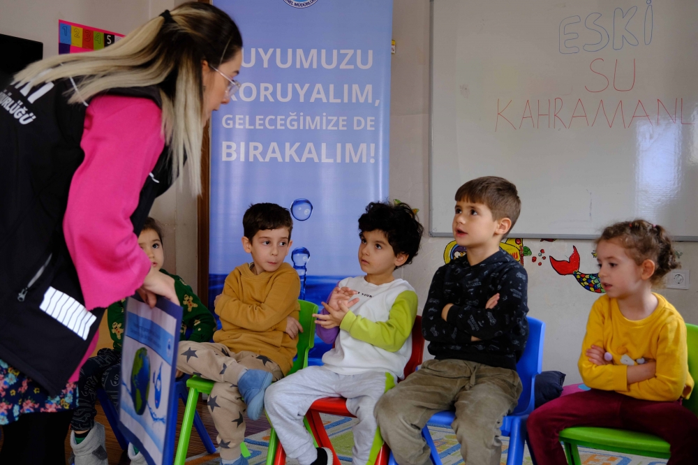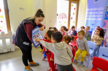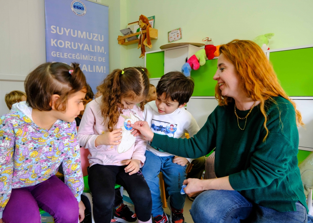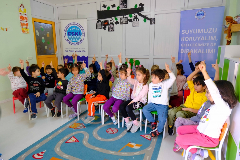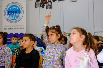 Eskişehir Büyükşehir Belediyesi Su ve Kanalizasyon İdaresi Genel Müdürlüğü (ESKİ), çocuklara su tasarrufu ve suyun önemini anlatıyor.