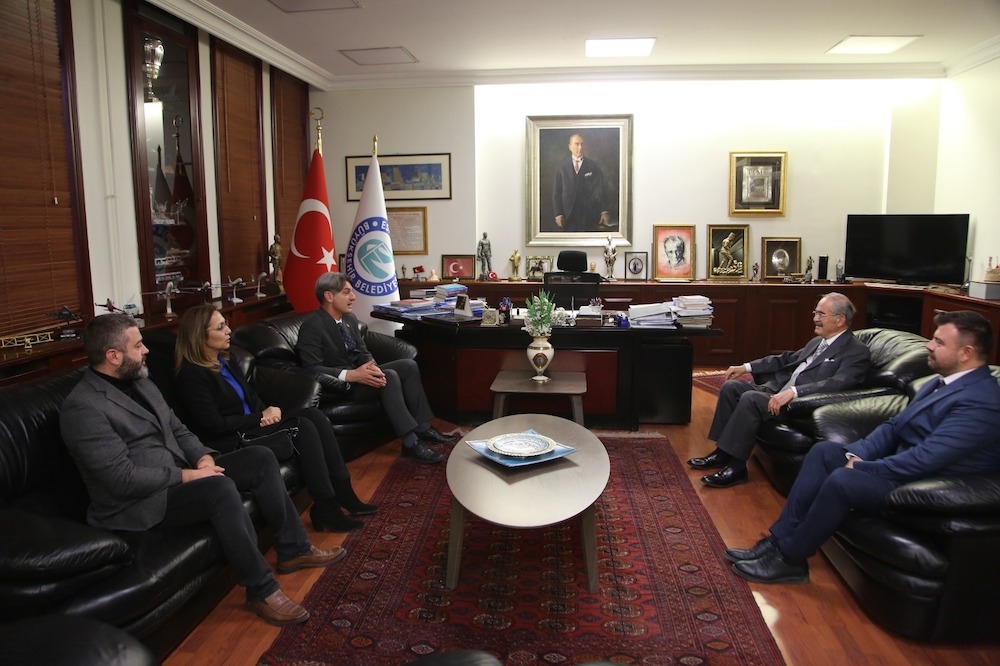 Eskişehir Bilecik Veteriner Hekimleri Odası (EBVHO) Başkanı Erdinç Yuva ve yönetim kurulu üyeleri, Eskişehir Büyükşehir Belediye Başkanı Prof. Dr. Yılmaz Büyükerşen’e nezaket ziyaretinde bulundu.