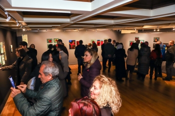 Başkan Büyükerşen, sanatçı Şekip Oğuz ve davetliler açılış kurdelesinin kesilmesinin ardından birlikte sergiyi gezdi.