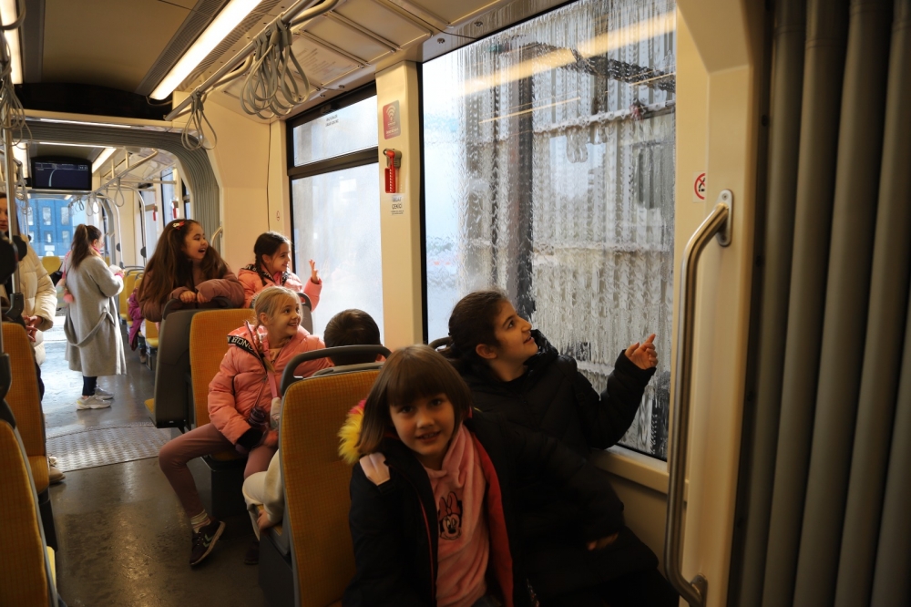 Tramvay donanımları da tanıtan ESTRAM görevlileri, minik öğrencilerin merak ettikleri sorulara da yanıt verdiler. Minik öğrenciler de kendilerini ağırladıkları ve bilgilendirdikleri için yetkililere teşekkür ettiler.