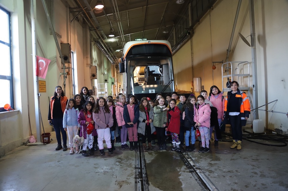 Eskişehir Hafif Raylı Sistem projesini incelemek ve tramvayların çalışma sistemini görmek üzere teknik okul gezisi düzenleyen Milli Zafer İlkokulu 3. sınıf öğrencileri, ESTRAM’ın misafiri oldular.