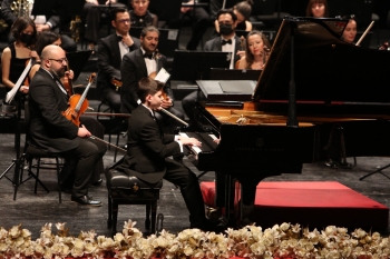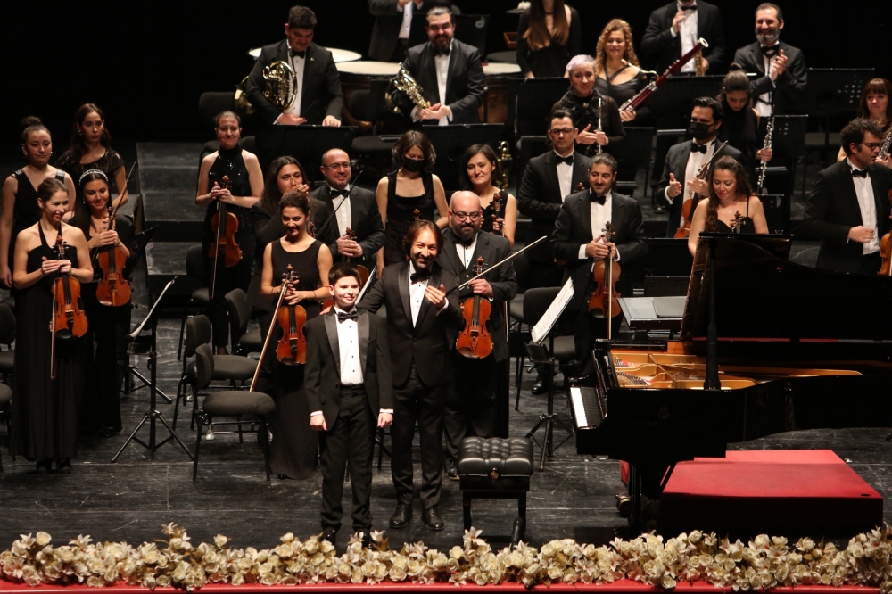 Orkestra şefliğini Türkiye’nin en başarılı şeflerinden İbrahim Yazıcı’nın yaptığı konserde, solist on üç yaşındaki yetenekli piyanist Adil Kerem Ünal’dı. Yazıcı, piyano, bestecilik ve orkestra şefliği üzerine eğitim aldı. Yurt içinde ve dışında birçok orkestrayla piyanist ve orkestra şefi olarak sahneye çıktı. Dünyadaki pek çok prestijli salonda konserler verdi. Uluslararası birçok festivalde görev aldı. A.A. Saygun, Fazıl Say, Muammer Sun gibi bestecilerin eserlerinin cd ve dvd kayıtlarını yaptı. 2002’de Hacettepe Üniversitesi’nden “Sanatsal Teşvik Ödülü”, İtalya Cumhurbaşkanı tarafından verilen “Cavaliere dell’Ordine della Stella d’Italia” ve 2012’de “Yılın Şefi” ödüllerine layık görüldü. 2017’den itibaren besteciliğe yönelen sanatçı birçok eser besteledi. Halen İzmir Devlet Opera Balesi’nde görev almakta, Olten Filarmoni Orkestrası’nın ve Karşıyaka Oda Orkestrası’nın müzik ve sanat direktörlüğünü yürütmektedir.