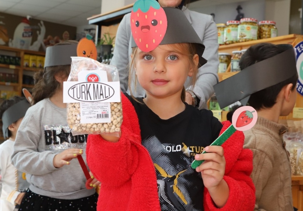 Etkinlikte çocuklar, kartonlardan yaptıkları ve üzerine çeşitli meyvelerin resimlerini yapıştırdıkları taçları taktılar. Burada çocuklar, “Yerli malı nedir? Neden yerli malı kullanmalıyız? Üretmek neden önemli?” gibi soruların yanıtlarını Üretici Market yetkililerinden öğrendiler.