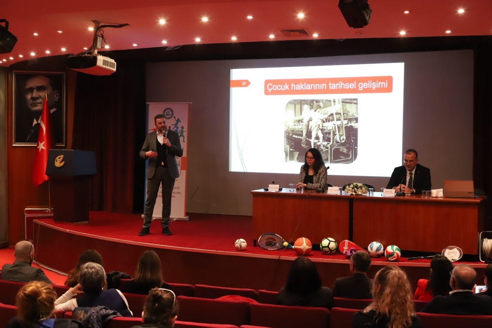 Çocuk Koruma Programı hakkında bilgiler veren Prof. Dr. Mustafa Şahin, “Gelişmiş ülkelerdeki modern çocukluk anlayışı ve çocuk koruma politikalarının günümüz koşullarına ulaşmalarını sağlayan belli başlı üç gelişmeden bahsetmek mümkündür. Çocukların yetişkinlerden farklı hukuk kurallarına tabi olması gerektiğini dile getiren ve uygulamaya koyan görüşün ortaya çıkmasıdır. Çocuklara göre hukuk kuralları geliştirilmesine paralel olarak gelişen kurumsallaşmadır. İlk iki sürecin tamamlayıcısı konumunda olan kamusal politikaların oluşturulması, plan ve projelerin geliştirilmesi ve uygulanmasıdır.” dedi. Sporda istismar konusuna da değinen Şahin, cinsel istismarın yanı sıra fiziksel ve duygusal istismara da dikkat çekti.
