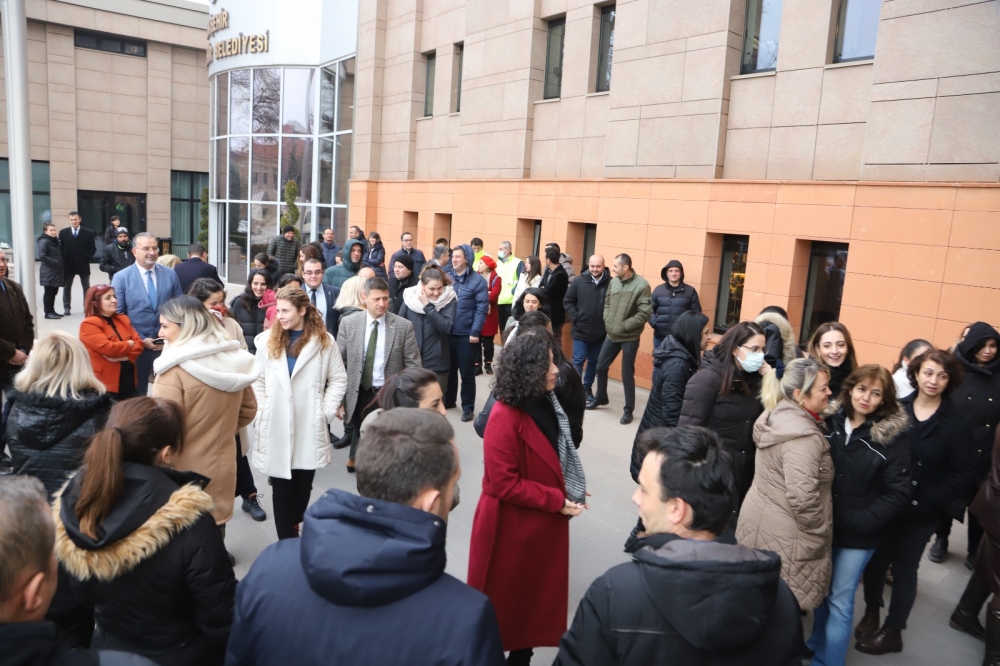 Yangın alarmının çalmasıyla birlikte belediye binasında çalışan görevliler çok kısa bir sürede binayı boşalttı. Binayı tamamen boşaltan belediye çalışanları olası yangın anında binadan ayrılarak ekiplerin müdahalesi için beklemeye geçti.