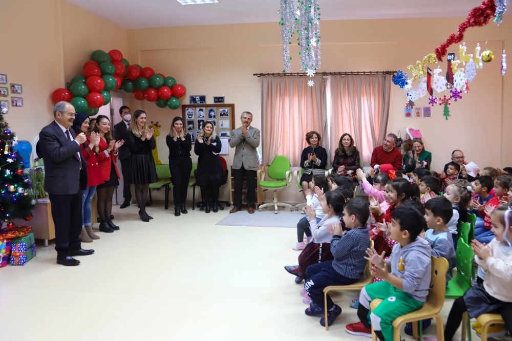 Büyükerşen ilk olarak yeni yıl kutlamaları kapsamında Çocuk Hakları Birimi’nde çocuklarla buluştu. Etkinliğe Büyükşehir Belediyesi Genel Sekreteri Ayşe Ünlüce de katılırken Büyükerşen, çocuklarla yeni yıl beklentilerini, ileride hangi meslekleri seçmek istediklerini ve kendisinden bir istekleri olup olmadığı gibi konularda sohbet ederek, yeni yıllarını kutladı.