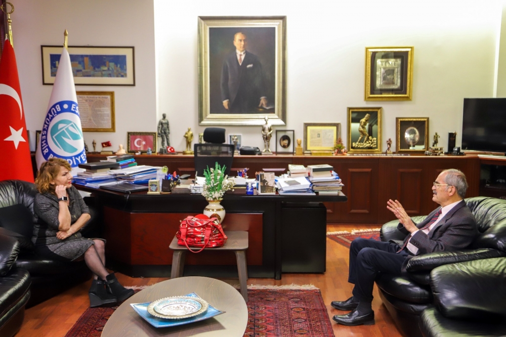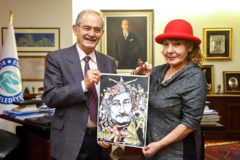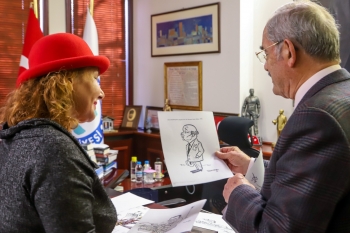 Yarışmanın onur konuğu ve jüri üyesi Ruhan Selçuk, Büyükşehir Belediye Başkanı Prof. Dr. Yılmaz Büyükerşen’i makamında ziyaret etti. Ziyarette Milas Belediyesi tarafından bu yıl 12’ncisi düzenlenen Uluslararası Turhan Selçuk Karikatür Yarışması’nda jüri başkanlığını Başkan Yılmaz Büyükerşen’in yapmasının kendileri için çok değerli olduğunu belirten Ruhan Selçuk, “Güzel Milas’ımızda 2011 yılında başlayan Uluslararası Turhan Selçuk Karikatür Yarışması’nda jüri başkanlığı teklifimizi kabul eden, sanatçı kimliğiyle büyük bir değer olan Eskişehir Büyükşehir Belediye Başkanımız sayın Prof. Dr. Yılmaz Büyükerşen’e çok teşekkür ediyorum. Her zaman yanımızda olan değerli Milas Belediye Başkanımız Muhammet Tokat’ın sizlerin verdiği katkı nedeniyle hazırlanan teşekkür plaketini takdim etmekten onur duyuyorum.” dedi.