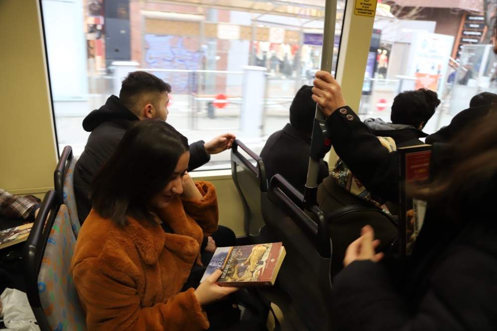 Toplumda kitap okuma alışkanlığının çok az olduğuna değinen öğrenciler, “Şehir içi toplu taşımada, şehirler arası yolculukta, tramvayda, trende, otobüste kısacası her yerde, her anımızda bir kitap yanımızda olmalı. Ne yazık ki kitap okuyan sayısı ortak noktalardagiderek azalıyor. Kitap en iyi dosttur onu yanımızdan ayırmayalım.” dediler. Tramvaydaki yolcular da anlamlı etkinlik nedeniyle yetkililere ve öğrencilere teşekkür ettiler.