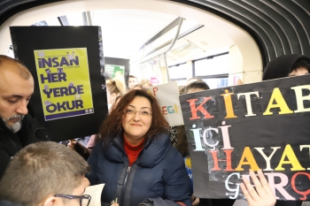 Ellerinde kitaplar ve “İnsan her yerde okur”, “Kitabın içi hayatın gerçeği”, “Kitap oku geleceği doku”, “Kitap boşlukları doldurur” yazılı dövizlerle tramvaya binen öğrenciler yolcular tarafından ilgiyle karşılandı. Öğrenciler ve öğretmenler Richard Bach’ın Martı romanından pasajlar okudular ve topladıkları kitapları yolculara dağıttılar. Daha sonra yolcular ve öğrenciler birlikte kitap okuyarak seyahat ettiler. İnsanlara kitap okuma alışkanlığı kazandırmak için böyle bir projeyi hayata geçirmek istediklerini ifade eden öğrenciler, destekleri dolayısıyla Büyükşehir Belediyesi’ne ve Estram yetkililerine teşekkür ettiler.