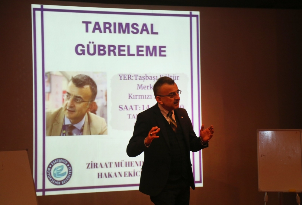 Eskişehir Büyükşehir Belediyesi ve TMMOB Ziraat Mühendisleri Odası Eskişehir Şubesi işbirliğiyle düzenlenen “Tarımsal Gübreleme” eğitimi, Taşbaşı Kültür Merkezi Kırmızı Salon’da Ziraat Mühendisi Hakan Ekici’nin sunumu ile gerçekleştirdi.