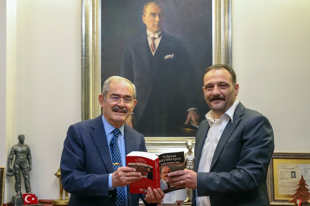 Eskişehir Büyükşehir Belediye Başkanı Prof. Dr. Yılmaz Büyükerşen’e yönelik nezaket ziyaretleri sürüyor. Bu kapsamda Sözcü Gazetesi yazarı Aytunç Erkin, Başkan Büyükerşen’i makamında ziyaret etti.