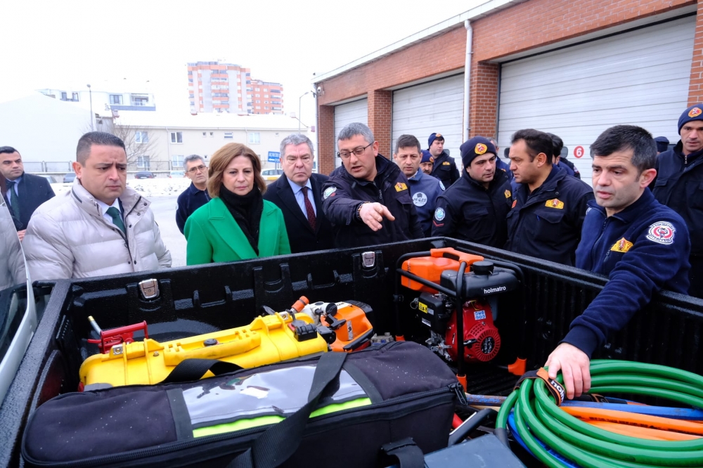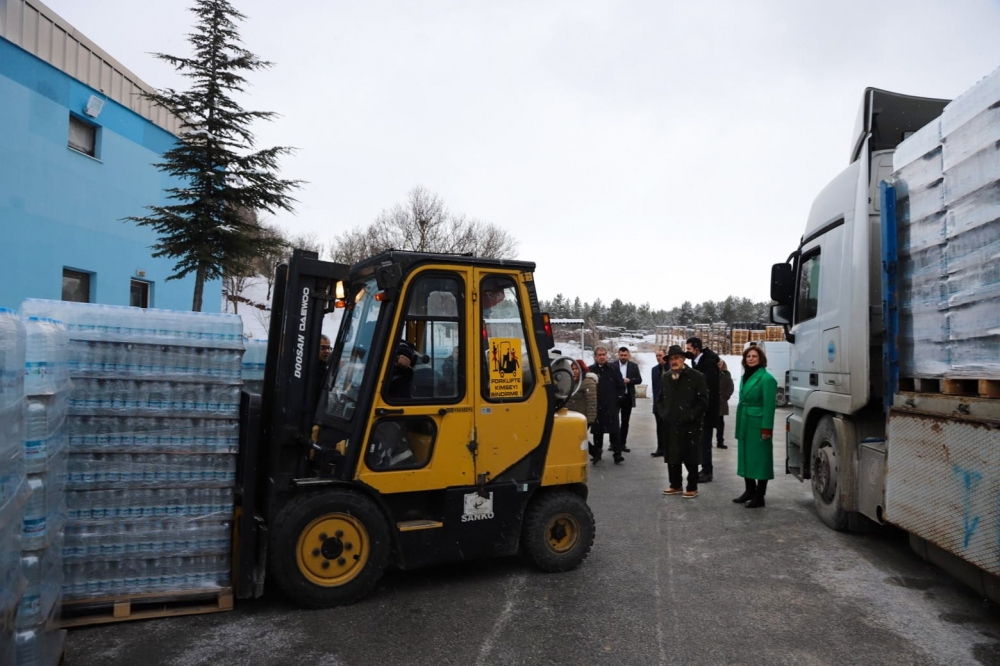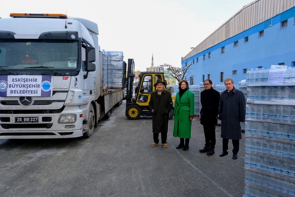 Toplantı sonrası içerisinde sismik arama kurtarma cihazlarının da bulunduğu arama kurtarma araçları ve ekipleri Eskişehir Büyükşehir Belediyesi Genel Sekreteri Ayşe Ünlüce, Genel Sekreter Yardımcıları Deniz Kaplan, Senem Ekinci ve Şenol Kara tarafından Adana’ya uğurlandı. Daha sonra Kalabak Tesislerine geçen Başkan Büyükerşen, ESKİ Genel Müdürü Oğuzhan Özen ve bürokratlar, burada hazırlanan 10 bin 80 adet 1,5 litre ve 10 bin 944 adet 0,5 litreden oluşan 1 TIR Kalabak suyunu deprem bölgesine gönderdi.