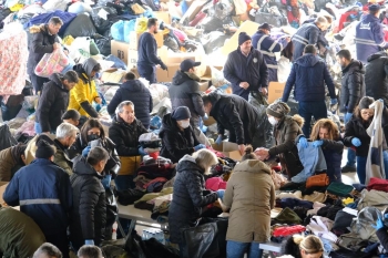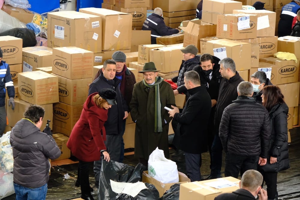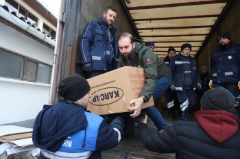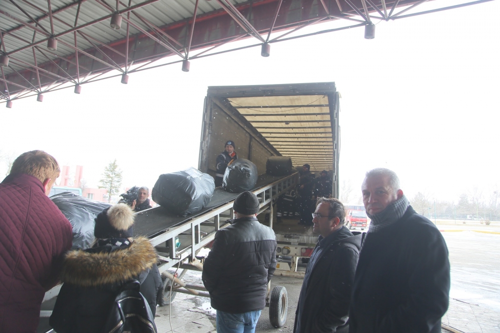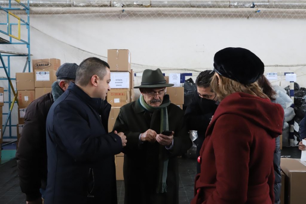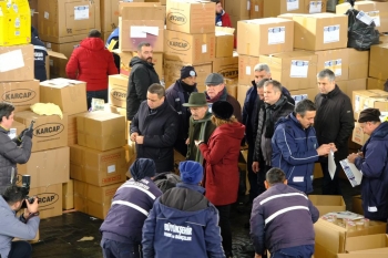 Büyükşehir Belediyesi Spor Salonu ve Otogar’da belediye görevlileri tarafından tasnif edilerek TIR’lara yüklenen çalışmaları Büyükşehir Belediyesi Genel Sekreteri Ayşe Ünlüce ve Genel Sekreter Yardımcıları ile birlikte yerinde takip eden Başkan Büyükerşen, yardımsever Eskişehirlilere ve ekiplere yaptıkları çalışmalarıyla nedeniyle teşekkür etti. Bölgedeki gelişmeleri anlık takip ettiklerini belirten Büyükerşen, başta temel ihtiyaç olan su olmak üzere araç gereç desteği sağlamaya devam ettiklerini belirtti.