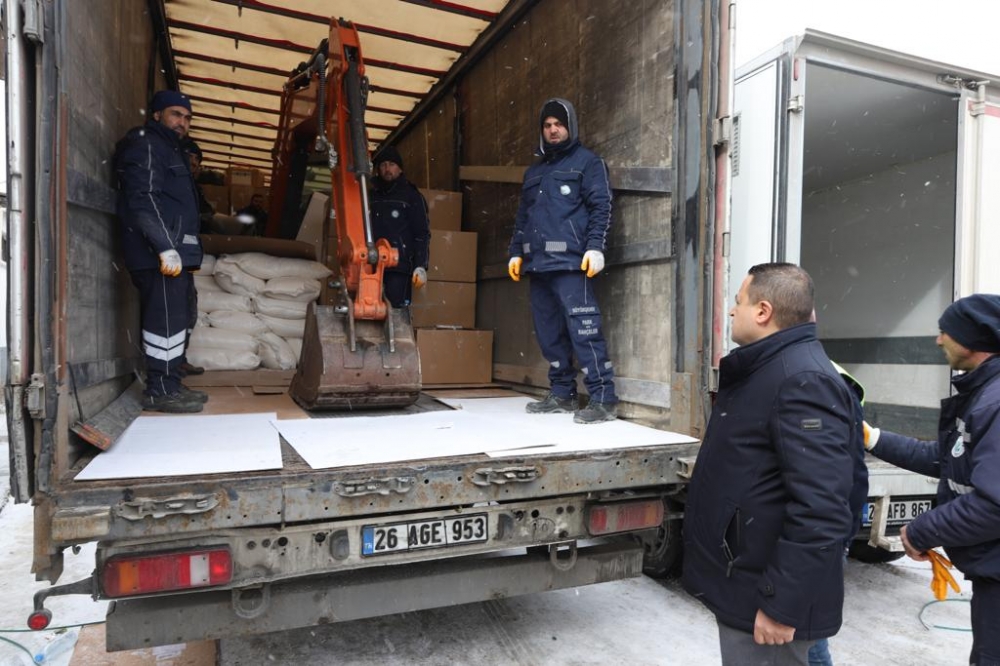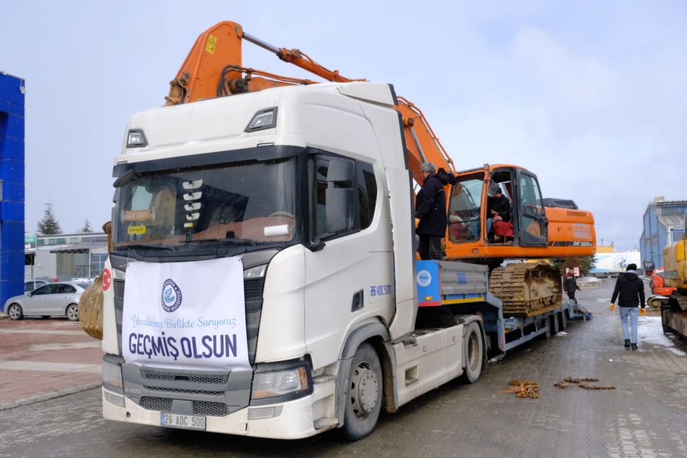 Kahramanmaraş'ta meydana ve 10 ilde büyük yıkıma neden olan depremler sonrası Eskişehir Büyükşehir Belediyesi tarafından başlatılan destek kampanyası devam ederken, afet bölgesine başta su, yiyecek, içecek olmak üzere gıda maddeleri, kıyafetler, araç gereç ve iş makinaları olmak üzere çok sayıda malzeme TIR’lar ile gönderilmeye devam ediyor.