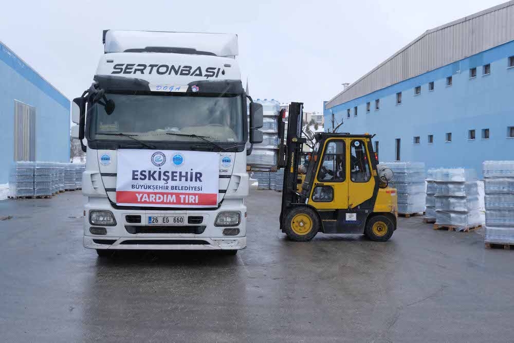 Eskişehir Büyükşehir Belediyesi Halk Ekmek A.Ş. ve ESKİ Genel Müdürlüğü, Halk Ekmek ve Kalabak üretimiyle afet bölgesine yoğun desteğini kesintisiz sürdürüyor. Gerek karayolu gerekse havayolu ile ekmek ve içme suyu deprem bölgesindeki afetzedelere ulaştırılıyor.