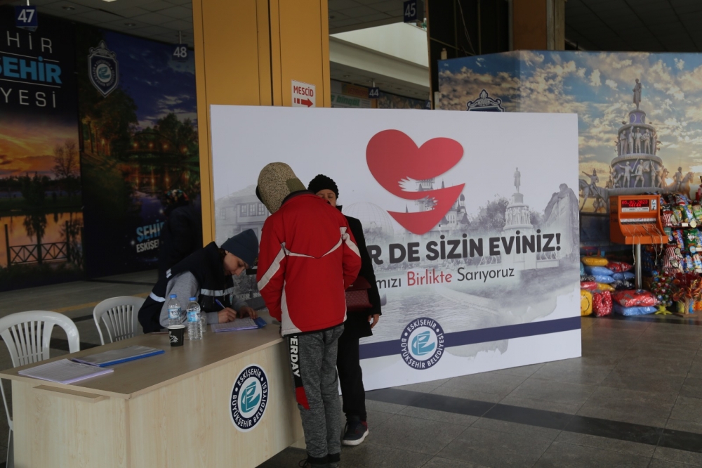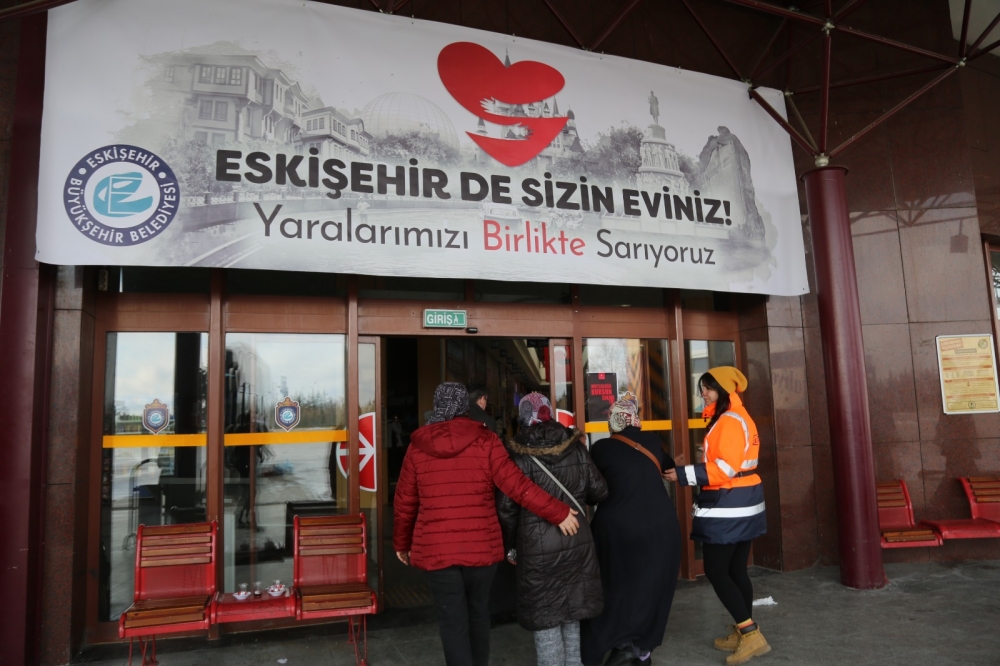 Eskişehir Büyükşehir Belediyesi tarafından oluşturulan Karşılama Masası ile misafir edilen depremzedelerin ihtiyaçları da karşılanıyor. Psikolojik destek başta olmak üzere tüm ihtiyaçların karşılanması için görevliler hazır bulunurken, daha sonra AFAD koordinesinde kalacakları yerlere otobüslerle ulaştırılıyor. Görevliler burada vatandaşlara yemek ve çocuklara şeker ikram ederken kayıt işlemlerini de gerçekleştirdiler.