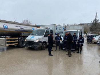 ESKİ Genel Müdürlüğü bölgede faaliyetlerini sürdürürken son olarak 2 adet bakım ve onarım aracı, 2 adet su tankeri ile 11 uzman personelini Kahramanmaraş ve Elbistan’a gönderdi. Ekipleri uğurlayan ESKİ Genel Müdürü Oğuzhan Özen, görevlerinde üstün başarılar diledi.