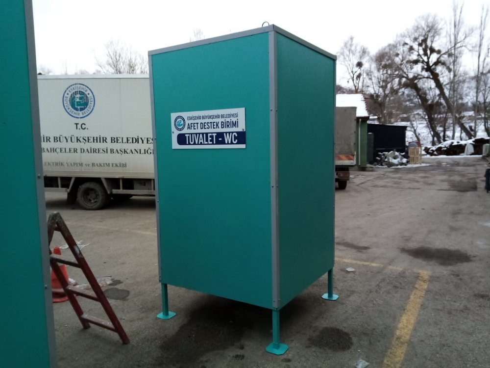 Eskişehir Büyükşehir Belediyesi afet bölgesine personel, araç gereç ve ekipman desteğini sürdürürken, acil ihtiyaçlar için de gece gündüz üretime devam ediyor. İnsani yardımların yanı sıra acil ihtiyaçlardan olan tuvalet konusunda Büyükşehir Belediyesi atölyelerinde üretilen seyyar tuvaletler bölgeye sevk edildi. Atölyelerde üretim yoğun şekilde sürerken, sevkiyatlar da devam edecek.