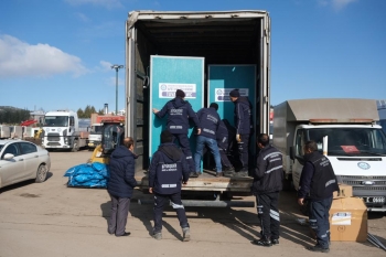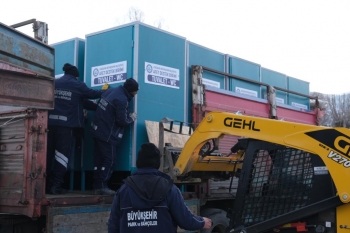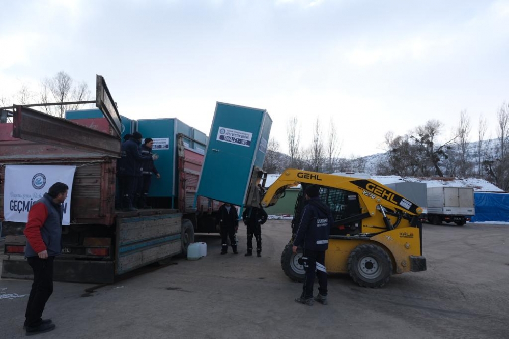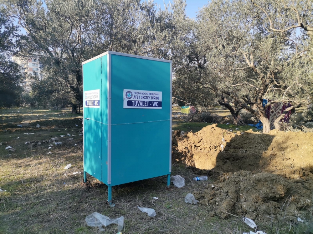 Büyükşehir Belediyesi iştiraki İmar A.Ş. deşarj alt yapı malzemelerini üretirken, Büyükşehir Belediyesi Park ve Bahçeler atölyelerinde üretimi yapılan seyyar tuvaletler afet bölgesine ulaşmaya devam ediyor.