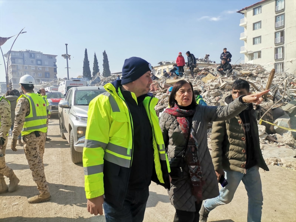 CHP Eskişehir Milletvekilleri Jale Nur Süllü ve Utku Çakırözer ile Hatay Büyükşehir Belediye Başkanı Lütfü Savaş, afet bölgesinde arama kurtarma başta olmak üzere yardım faaliyetlerini sürdüren Eskişehir Büyükşehir Belediyesi ekiplerini ziyaret ederek özverili çalışmaları nedeniyle teşekkür ettiler.