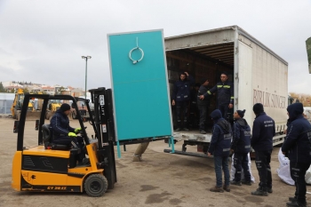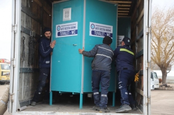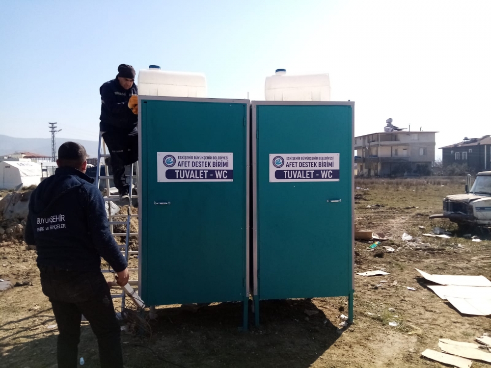 Deprem felaketi sonrası bölgede en acil ihtiyaçlardan olan tuvalet konusunda Eskişehir Büyükşehir Belediyesi atölyelerinde üretilen seyyar tuvaletler Hatay, Gaziantep ve Malatya başta olmak üzere afetten zarar gören illere ulaşmaya devam ediyor.