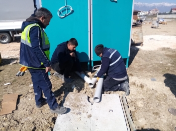 AFET BÖLGESİNDE İMDADA YETİŞEN SEYYAR TUVALETLER İÇİN YOĞUN MESAİ