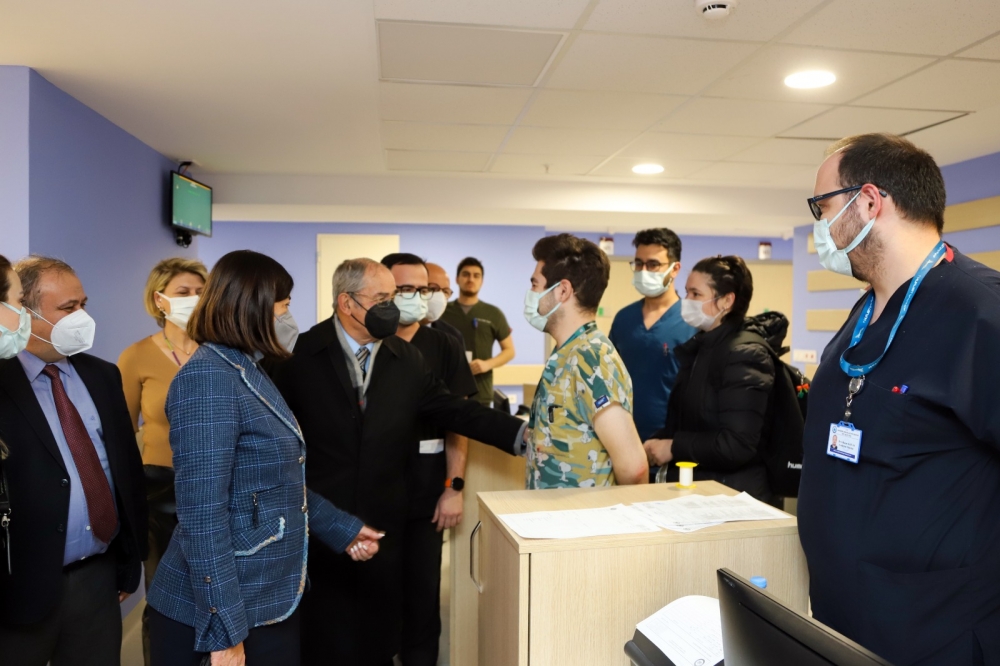 Eskişehir Osmangazi Üniversitesi Sağlık, Uygulama ve Araştırma Hastanesi’nde tedavileri devam eden vatandaşlara geçmiş olsun ziyareti yapan Büyükerşen, Süllü ve Çakırözer, sağlık çalışanlarına kolaylık dileyerek hastane yöneticilerinden vatandaşların durumu hakkında bilgi aldı.