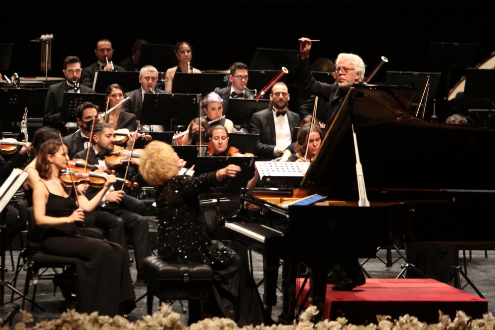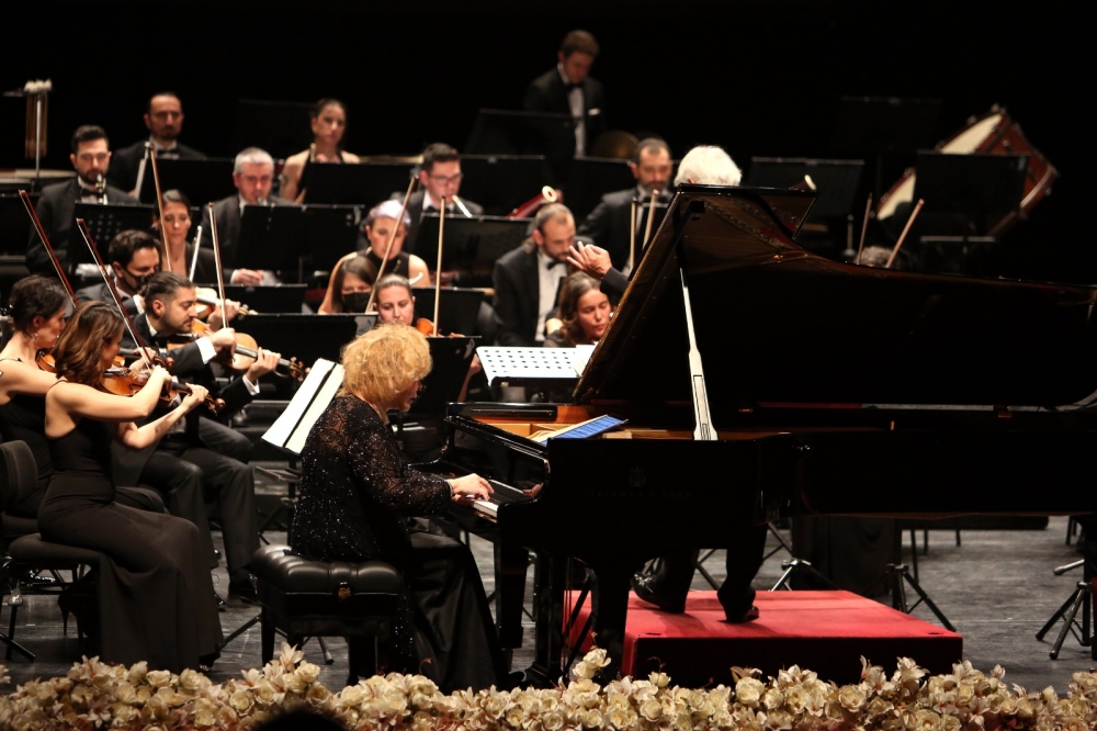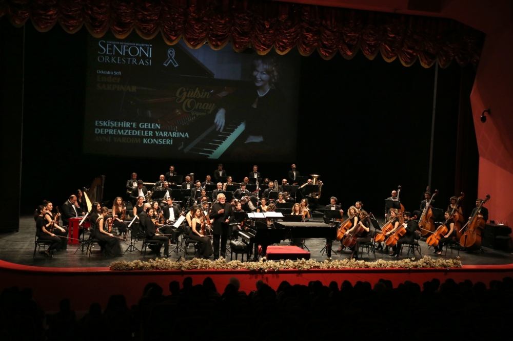 Dünyaca ünlü piyanist Gülsin Onay’ın solist olarak yer aldığı konserde orkestra şefi ise Ender Sakpınar oldu. Eser seçiminin deprem anı, depremin yarattığı büyük yıkım, sonrasındaki kayıplar ve kayıplara tutulan yas temasıyla ilerlediği konserde dinleyiciler gözyaşlarını tutamadı.