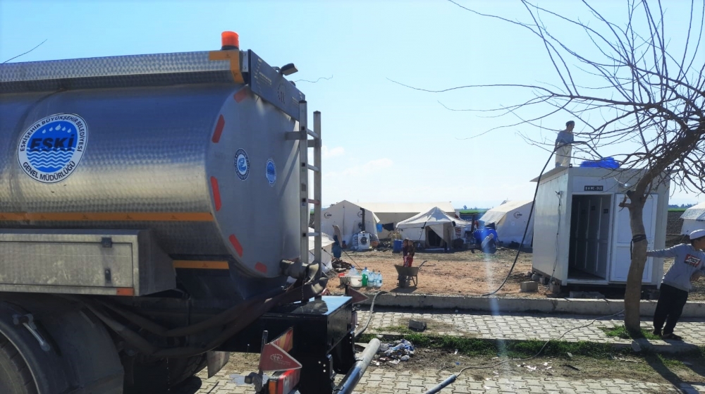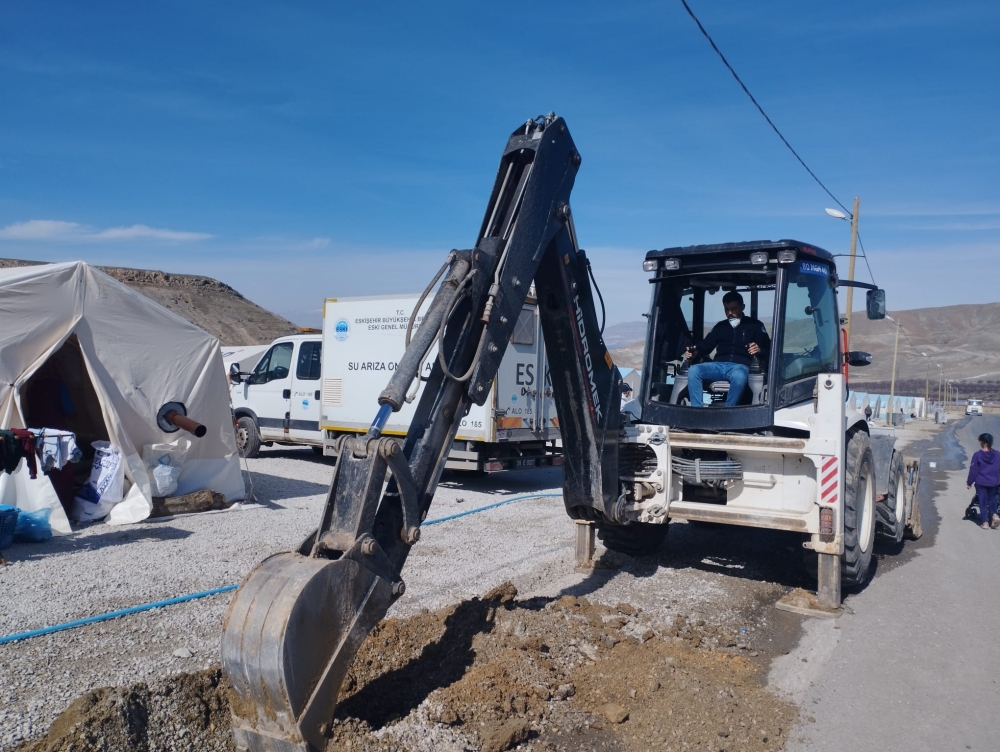 Eskişehir Büyükşehir Belediyesi Su ve Kanalizasyon İdaresi Genel Müdürlüğü (ESKİ) ekipleri Kahramanmaraş, Hatay, Malatya ve Adıyaman başta olmak üzere kent merkezleri ve kırsal alanlarda depremzedelerin suya erişimi ve kanalizasyon altyapısı konusunda yoğun çalışma yürütüyor.