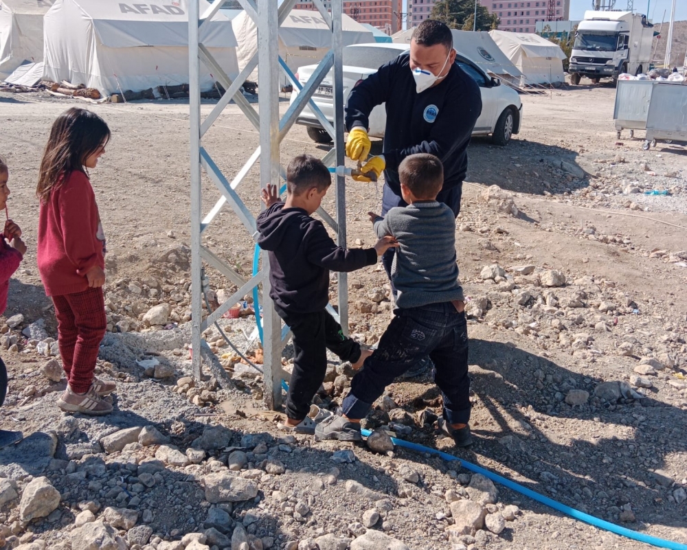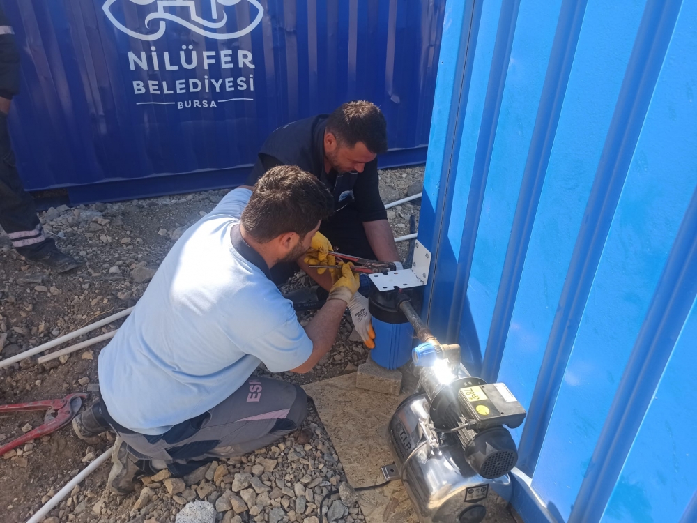 Ekipler ayrıca, Hatay Samandağ konteyner kentte şebeke suyunu içilebilir hale getirecek hidrofor sistemi ve arıtma sistemleri bağlantılarını da yaparak yeni çözümler üretmeye devam ediyor.