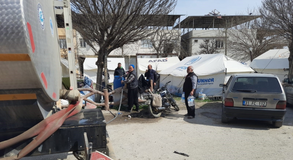 Yeni hat yapımı, bakım onarım çalışmaları ile başta çadır kentler, konteyner kentler, sahra hastaneleri, ilçeler, köyler olmak üzere afet bölgesinde vatandaşları suya kavuşturmak üzere yoğun mesai yapan ekipler, tankerlerle de temiz suyu vatandaşlara ulaştırıyor.