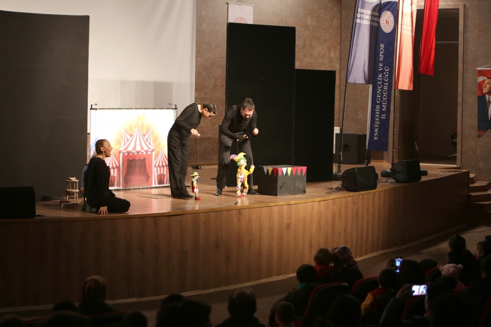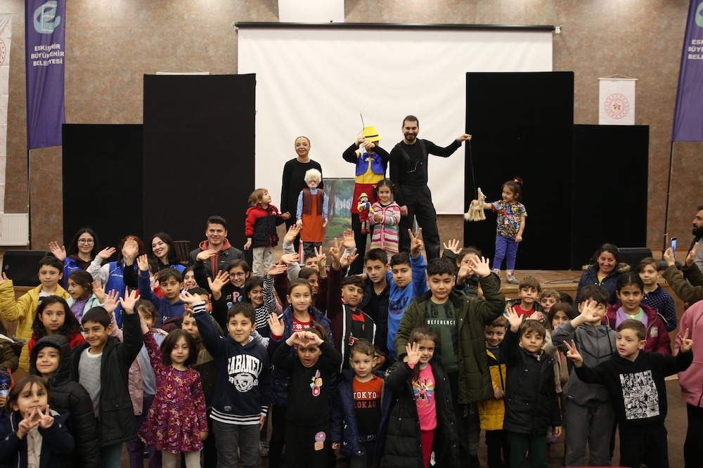 Eskişehir Büyükşehir Belediyesi Şehir Tiyatroları deprem felaketinden etkilenen ve bölgeden tahliye edilerek Eskişehir’de misafir edilen depremzede ailelerin çocukları için “Pinokyo” adlı kukla oyununu sergiledi.