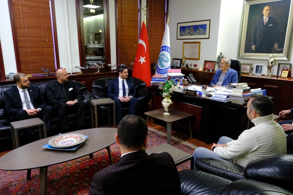 Eskişehir Büyükşehir Belediye Başkanı Prof. Dr. Yılmaz Büyükerşen’e yönelik nezaket ziyaretleri sürüyor. Bu kapsamda Eskişehirspor Kulüp Başkanı Erkan Koca, yönetim kurulu üyeleri, Teknik Direktör Ali Onur Cerrah ve Taraftarlar Birliği Başkanı Murat Diri Büyükerşen’i makamında ziyaret etti.