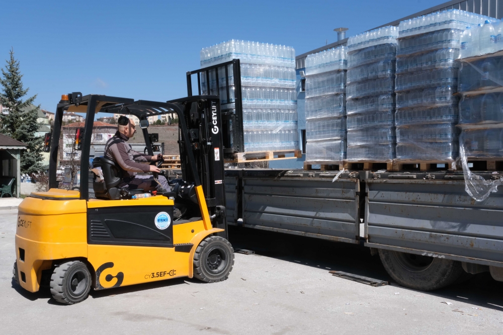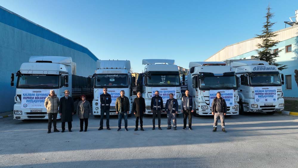 Kalabak Su Dolum Tesisleri ve Üretici Marketlerin yanı sıra online satış üzerinden afetzedeler için su Kalabak suyu satın alan Eskişehirlilerin desteği, ESKİ Genel Müdürü Oğuzhan Özen’in gözetiminde ekipler tarafından TIR’lara yüklenerek afetten etkilenen illere doğru yola çıktı.