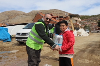 Pet şişe Kalabak suyu dağıtımları sırasında duygu dolu anlar yaşanırken, çocuklara kitap ve çikolata da hediye edildi. Vatandaşlar kendilerine ulaştırılan destek nedeniyle Eskişehir Büyükşehir Belediye Başkanı Prof. Dr. Yılmaz Büyükerşen ve Eskişehirlilere teşekkür ettiler.