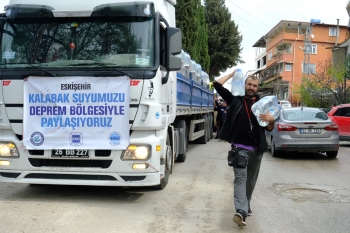 Eskişehir Büyükşehir Belediyesi ve ESKİ Genel Müdürlüğü’nün başlattığı, yardımseverlerin ve Eskişehirlilerin büyük bir ilgi göstererek desteklediği “Kalabak suyumuzu deprem bölgesiyle paylaşıyoruz” kampanyasında toplanan 12 TIR pet şişe Kalabak suyu, afetten etkilenen illere ulaştırıldı. Afetzedelere yapılan dağıtımlar esnasında hem duygusal hem de umutları yeşerten görüntüler ortaya çıktı.