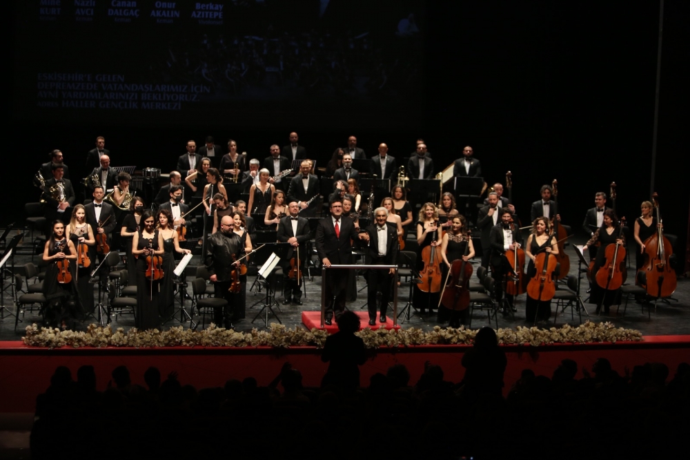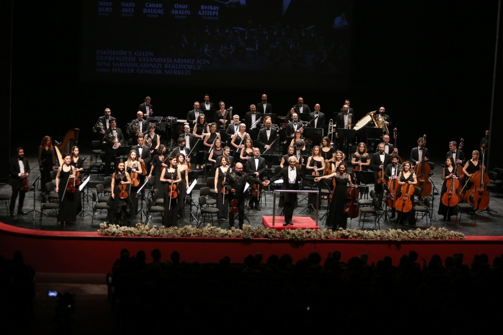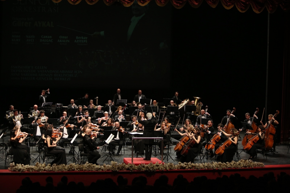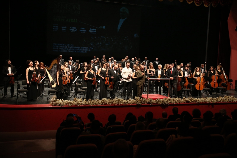 Eskişehir Büyükşehir Belediyesi Senfoni Orkestrası dünyaca ünlü şef Gürer Aykal yönetiminde depremzedelere yardım konseri verdi.