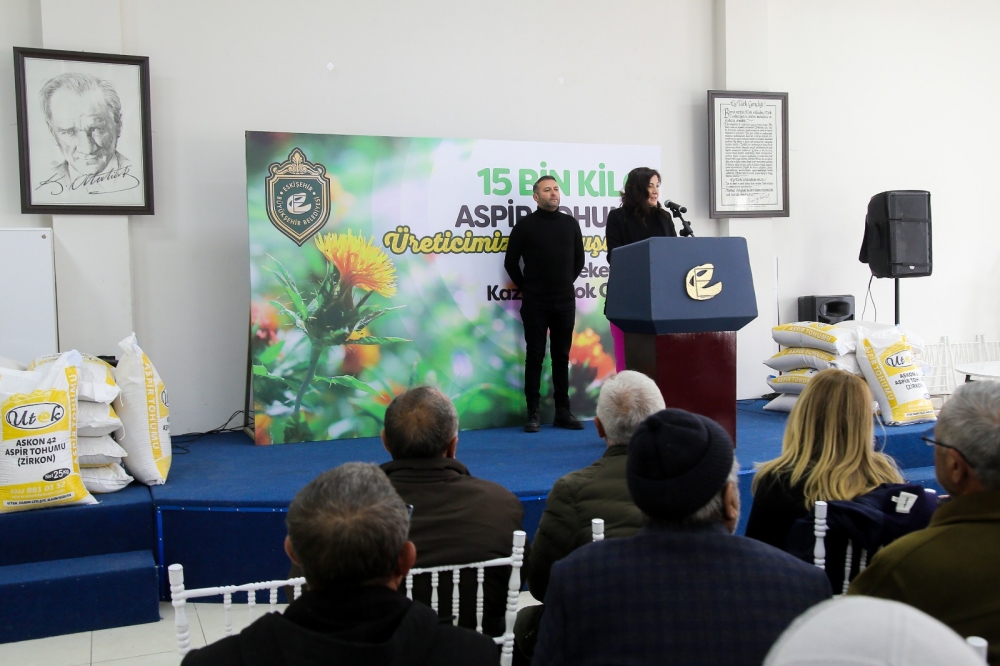 Burada çiftçilere seslenen Büyükşehir Belediyesi Genel Sekreter Yardımcısı Senem Ekinci, “Büyükşehir Belediyesi olarak kırsalda kalkınma, tarımda sürdürülebilirlik, gıda güvenliği ve siz çiftçilerimizin korunması için diğer ilçelerde nasıl projeler yapıyorsak burada da onu yapıyoruz. Örneğin kooperatifçilik Han’da çok gelişti. Arıcılık, lavanta bunlardan bazıları. Bugün toplanma amacımız olan aspir, çok faydalı bir bitki. İnsan beslenmesinde çok önemli ve kuraklığa karşı da kuru tarımda öne çıkıyor. Aynı zamanda yağı da çok değerli. İlaç sanayisinde, biyodizel olarak enerjide kullanılan ve küspesi hayvan yemi olan bu bitki konusunda sizlere sağladığımız destekle ekonomiye de önemli bir katkı sunmuş olacağız. Bildiğiniz üzere Tıbbi Aromatik Bitki İşleme Tesisi için Distilasyon ve Soğuk Pres Yağ Makinesinin hibesini yaptık. Yakında Erdal Başkanımız tesisi açacak. Onu da heyecanla bekliyoruz. Çalışmada emeği geçen herkese teşekkür ediyorum. Ürünümüz, kazancımız bol olsun.” dedi.
