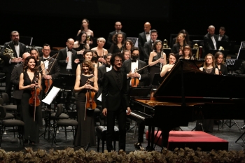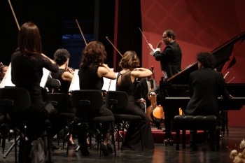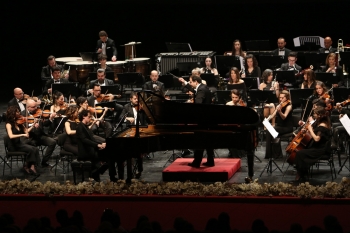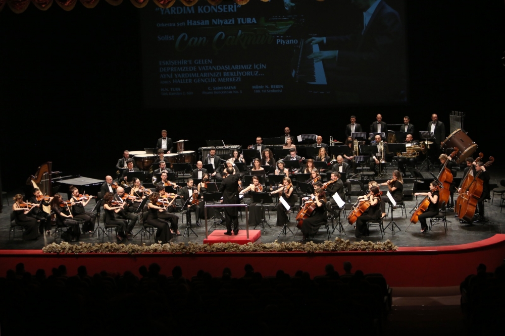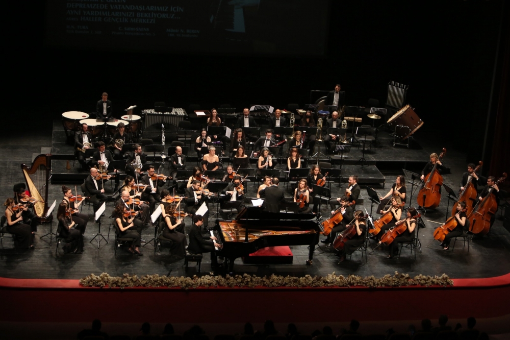 Müzikseverlerle buluşmaya devam eden Senfoni Orkestrası depremzedeler için yardım konserlerine bir yenisini daha ekledi. Besteci ve orkestra şefi Hasan Niyazi Tura konuk şef olarak sahnede yer alırken genç ve yetenekli piyanist Can Çakmur solist olarak sahne aldı. C.Saint-Saens’in 5. Piyano Konçertosunu başarıyla icra eden Çakmur, dinleyicileri adeta büyüledi. Uzun alkışlardan sonra bis olarak F.Chopin’in Fantasie Impromtu eserini başarıyla seslendiren sanatçı bravo nidalarıyla sahneden uğurlandı.