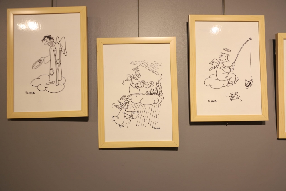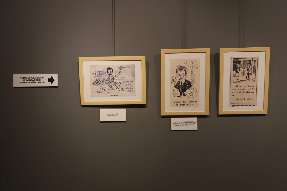 Büyükşehir Belediye Başkanı Yılmaz Büyükerşen de konuşmasında karikatürle tanışma sürecine değinerek, “Sergiyi hazırlayan herkese çok teşekkür ediyorum. Ben ilk paramı karikatür çizerek kazandım. Arkadaşlar sürpriz yaparak sergiye bu eserlerimi de dahil etmişler. Anadolu Üniversitesi Rektörlüğü dönemimde Türkiye’de ilk kez karikatür dersinin okutulmasını sağladım. Eskişehir’de yine ilk Karikatür Müzesini de biz açmıştık. Şimdi üniversite ne yazık ki çok önemsemiyor. Diğer yandan Ankara Mimarlar Odası’na ayrı bir parantez açmalıyım. Mimarlar Odası Ankara’nın amazonları olarak Cumhuriyete sahip çıkıyorlar. Atatürk Orman Çiftliği gibi birçok Cumhuriyet dönemi Atatürk eserlerini davalarla kurtarıyorlar. O yüzden onların bu mücadelesini de yürekten kutluyorum. Sergide emeği geçen herkese bir kez daha teşekkür ediyorum.” dedi.