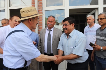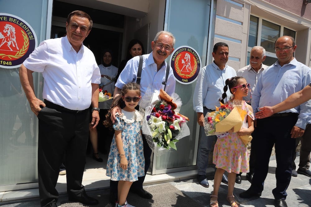 Mahmudiye Belediye binası önünde Başkan Yılmaz Büyükerşen ve beraberindeki heyet, Mahmudiye Belediye Başkanı İshak Gündoğan ve çocuklar tarafından çiçeklerle karşılandı. Başkanlar daha sonra İshak Gündoğan ile makamında bir araya gelerek görüş alışverişinde bulundular.