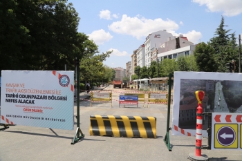 “1. Etap Yol ve Tretuvar Düzenleme Çalışmaları”nın ilk etabı kapsamında Alaaddin Parkı çevresi trafiğe kapatıldı. Bölgeye uyarı levhaları ve bilgilendirici afişler yerleştirilirken, ekipler kaldırım, refüj ve kavşak noktasındaki çalılar ile çeşitli bitkilerin sökümünü gerçekleştiriyor. Otobüs duraklarının Alaaddin Parkı üst tarafına taşındığı alanda ekiplerin yoğun çalışması aralıksız devam edecek.