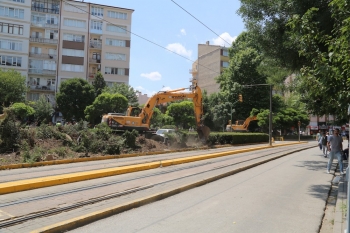 Eskişehir Büyükşehir Belediyesi, Odunpazarı ve Atatürk Lisesi kavşaklarında yapacağı kavşak düzenleme projesine başladı. Bölge trafiğe kapatılırken, ekipler çalışma kapsamında kaldırım ve bitki söküm çalışmaları gerçekleştiriyor.